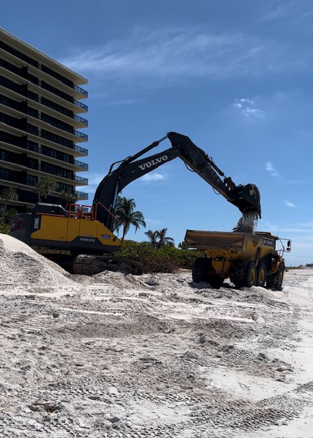 Pinellas County, located on the west coast of Florida, experienced extensive damage to their coastline from Hurricane Idalia, which impacted the coast as a Category 4 storm in August 2023. On September 13, 2023, the Pinellas County Public Works Department set a goal to start construction to restore the damaged dunes. In collaboration with the County’s public works, purchasing, budget, and attorneys’ offices; the public; and the contractor, construction began on September 20, 2023. The active project area moved strategically along the coast, as County teams triaged the damage and worked on the most critical areas first.